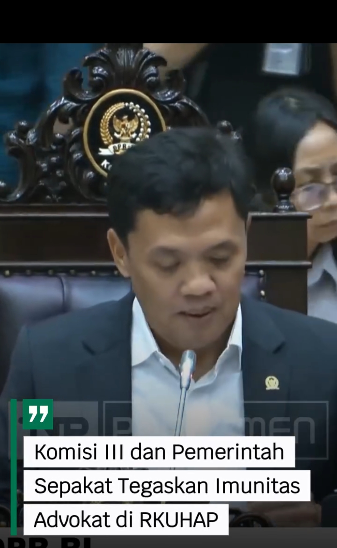 Habiburokhman, dalam sebuah rapat kerja yang dihadiri oleh perwakilan pemerintah. Menurut Habiburokhman, isu imunitas advokat perlu ditegaskan tidak hanya dalam Undang-Undang Advokat, tetapi juga dalam RKUHAP.