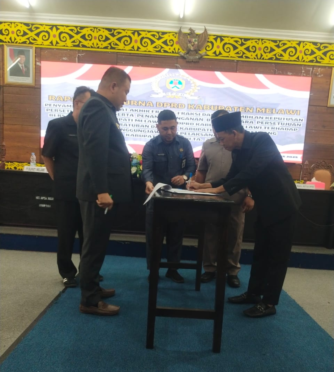 Proses persetujuan Raperda ini diakhiri dengan penandatanganan berita acara persetujuan bersama. Dokumen tersebut ditandatangani oleh Bupati Melawi, Ketua DPRD Hendegi Januardi UY, dan Wakil Ketua II Marwan sebagai simbol sinergi dan kesepakatan antara pihak eksekutif dan legislatif.