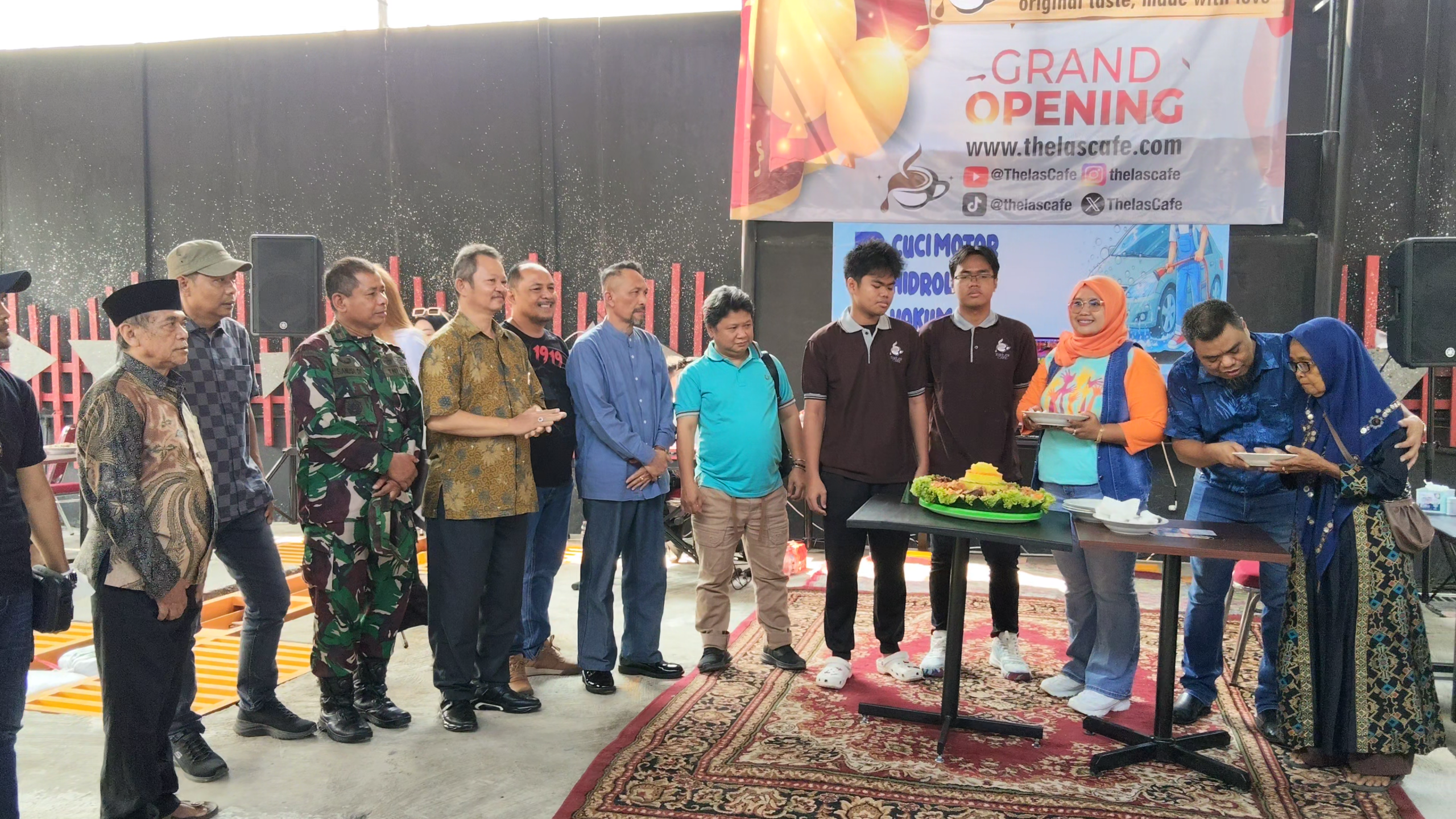 Acara peresmian terasa hangat dan penuh kekeluargaan dengan kehadiran Camat Jatiasih Ashari, tokoh masyarakat, serta berbagai komunitas. Sebagai wujud syukur, Direktur Thelas Cafe, Naufal, melakukan pemotongan tumpeng didampingi ayahnya yang juga pemilik, Mulyadi.