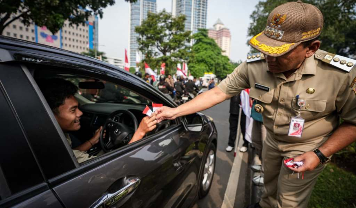 Usai apel, Dirjen Bahtiar bersama Wali Kota Jakarta Barat Uus Kuswanto dan jajaran Forkopimko langsung ke Jalan Kembangan Raya, depan kantor wali kota, membagikan bendera kepada pengemudi dan pemotor yang melintas. Pembagian dilanjutkan ke Gang H Mading RT 05 dan 08 RW 02 Kembangan Utara untuk warga di lingkungan setempat.