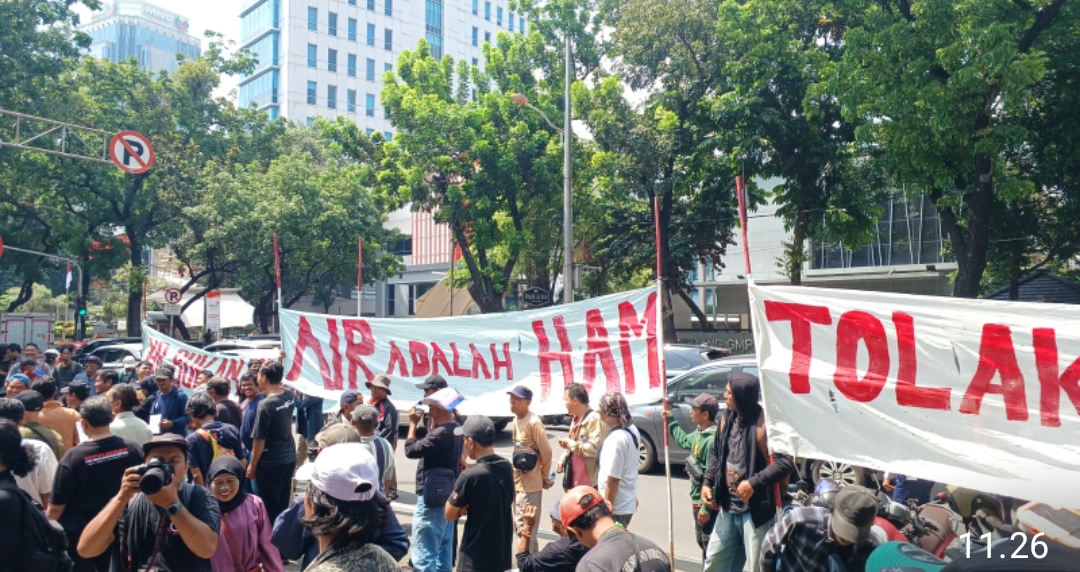 Massa aksi, di bawah koordinasi Pj Minawati, menyatakan kekhawatiran mereka bahwa perubahan status ini akan mengarah pada swastanisasi pengelolaan air di ibu kota. Dalam aksi tersebut, mereka membawa berbagai spanduk dan poster dengan pesan-pesan yang menolak komersialisasi air, menegaskan bahwa air adalah hak dasar rakyat, dan harus sepenuhnya dikelola oleh pemerintah daerah.