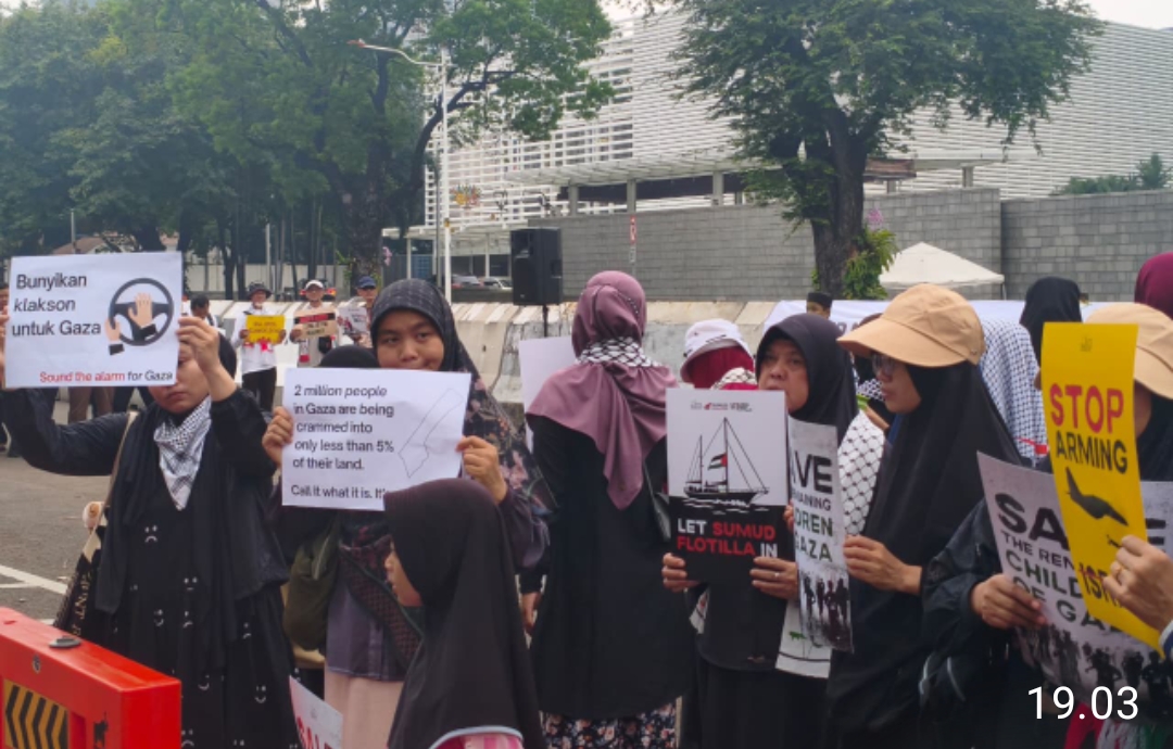 Aksi yang berlangsung dengan tertib dan damai ini diakhiri dengan pembacaan puisi, tausiah, dan doa bersama untuk kebebasan Palestina. Sekitar pukul 17.35 WIB, seluruh massa membubarkan diri dengan aman dan kondusif.