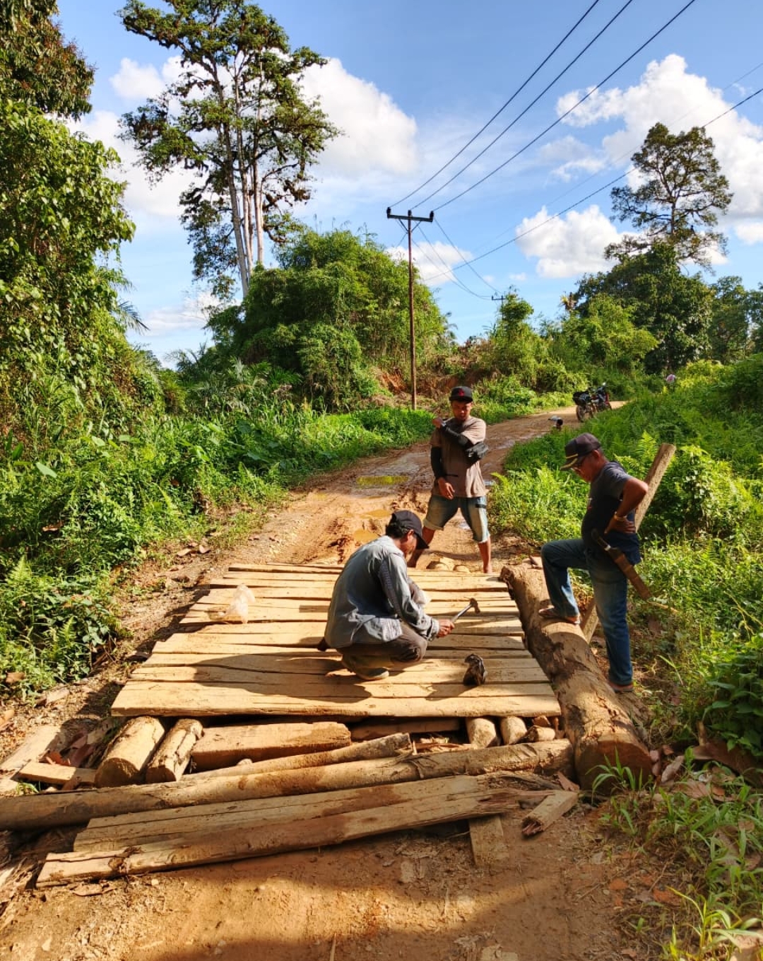 Proses perbaikan dilakukan dari pagi hingga sore hari dengan semangat kebersamaan. Salah satu warga mengungkapkan rasa syukurnya atas inisiatif kepala desa. “Awalnya kami takut sekali melewati jembatan, apalagi saat membawa kendaraan mengangkut hasil kebun. Setelah perbaikan ini, kami jadi lebih nyaman,” katanya.