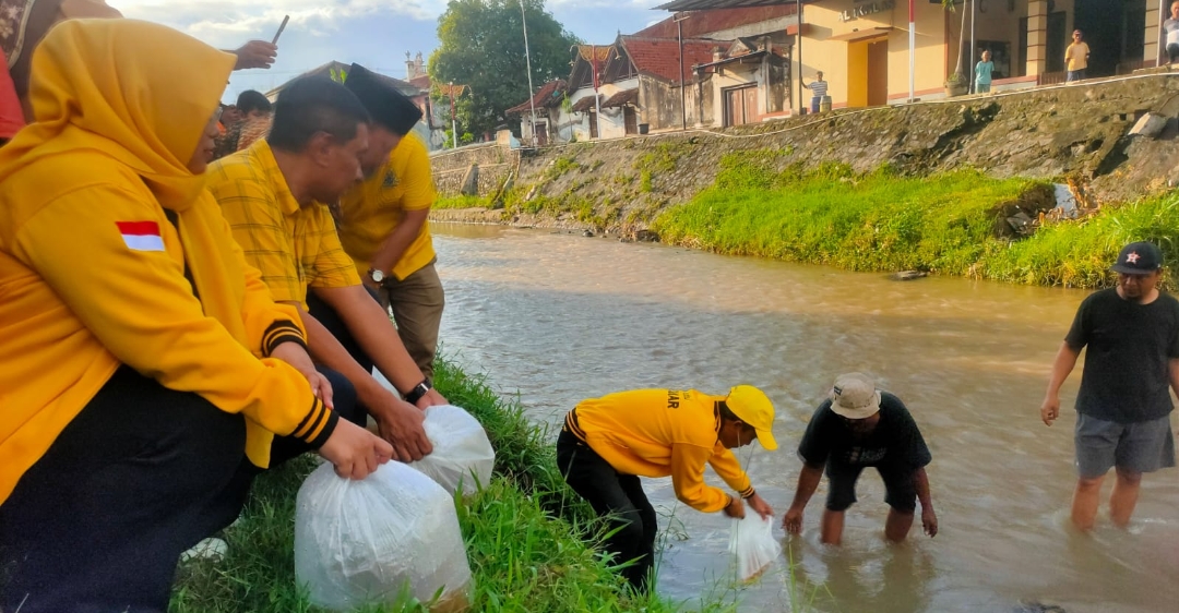 Klaten, faktapers.id – Dalam rangka memperingati Hari Ulang Tahun Partai Golkar ke-61, Dewan Pimpinan Daerah (DPD) Partai Golkar Kabupaten Klaten menggelar kegiatan pelestarian alam berupa tebar benih ikan nila sebanyak 61.000 ekor di Kali Ujung, Pandes, Kecamatan Wedi, Sabtu (25/10/2025).