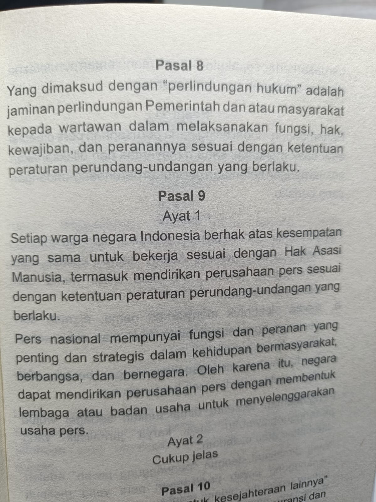 Pasal 8 menyebutkan: “Dalam melaksanakan profesinya wartawan mendapat perlindungan hukum.” Namun Koordinator Nasional FWK Raja Parlindungan Pane mempertanyakan efektivitasnya.