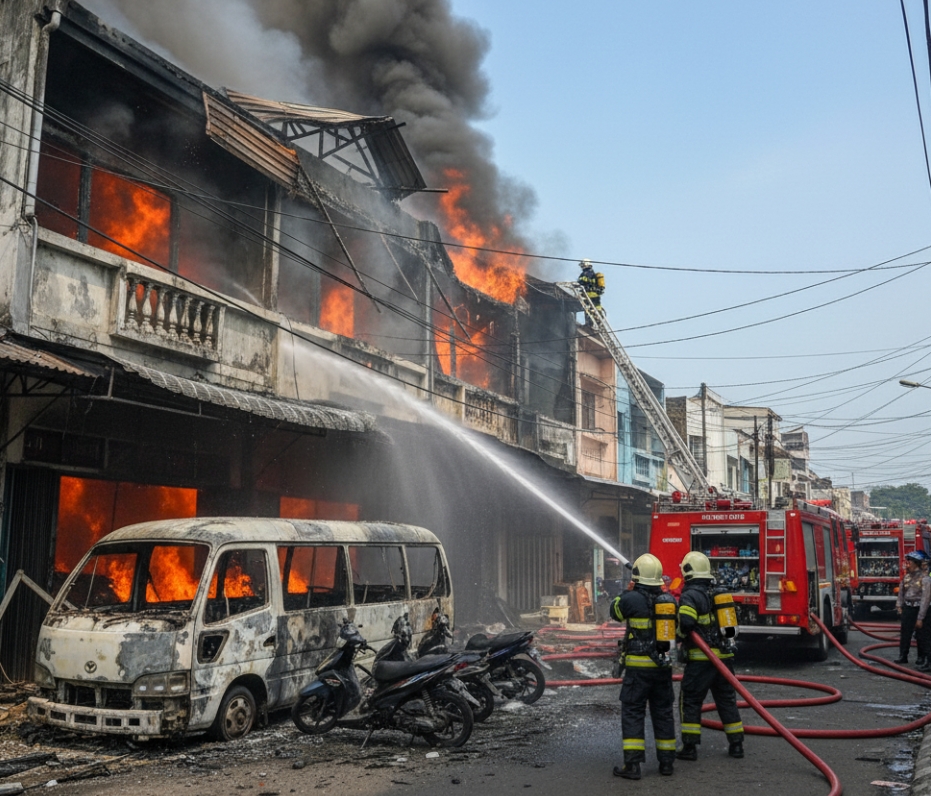 Tangerang, faktapers.id – Sebuah ruko di Jalan Proklamasi, Cimone Jaya, Karawaci, Kota Tangerang, dilalap si jago merah pada Kamis (6/11/2025) siang. Diduga kuat, pemicu kebakaran adalah ledakan dari portable charging yang tengah dicas di dalam ruko tersebut.