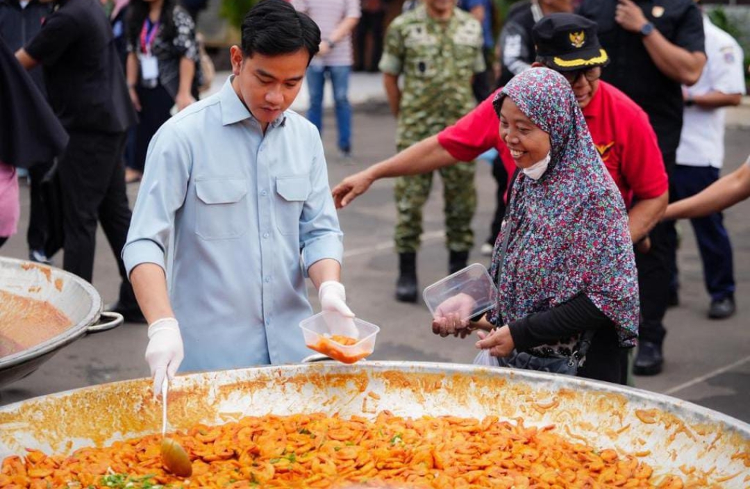 Di tengah kerumunan, Gibran terlihat menyapa warga sambil membagikan berbagai perlengkapan seperti buku tulis, kaos, sikat gigi, pasta gigi, serta beberapa barang lainnya. Usai membagikan bingkisan, ia menuju area utama tempat udang dimasak. Sempat berbincang sebentar dengan tim dapur, Gibran kemudian mengenakan sarung tangan sebelum ikut menyendok udang matang dari panci besar.