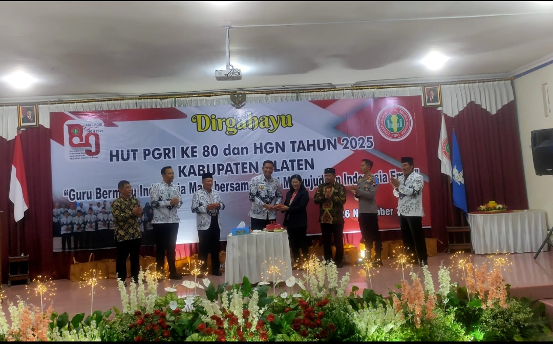 Klaten, faktapers.id.– Puncak peringatan Hari Ulang Tahun ke-80 Persatuan Guru Republik Indonesia (PGRI) sekaligus Hari Guru Nasional (HGN) digelar di Gedung PGRI Klaten, Rabu (26/11/2025) malam.
