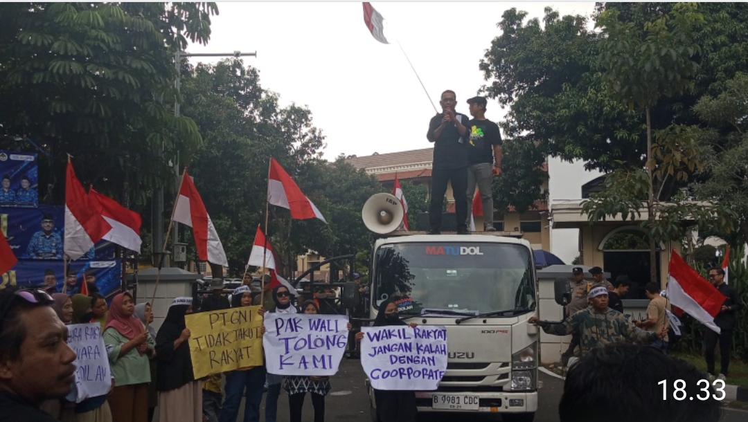 ​Dalam orasi yang disampaikan di tengah guyuran hujan deras, Koordinator Aksi, Sdr. Marsel, mengungkapkan bahwa kehidupan sekitar 37 Kepala Keluarga (KK) atau 300 warga di Kedaung Wetan telah terisolasi selama satu bulan akibat penutupan akses oleh PT GNI.